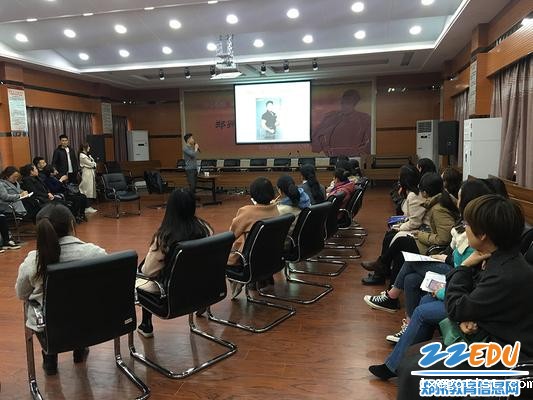 中国化妆十佳化妆造型师、国家级评审考评员、河南电视台主持人特约化妆师吾乐老师是九中老师们的老朋友,今年他给女老师们带来的化妆讲座以“精致·日常”为主题,非常切合老师们的工作性质和日常情况,他从底妆、眉眼、唇几个突破点教给老师简单易行的修容方法,还特别提醒老师们改善肤质的重要性,交代老师们劳逸结合不熬夜,相当贴心;而和吾乐老师同来的丁梦姝老师,是河南工程学院服装学院讲师、国家职业服装工艺定制师、职业色彩搭配师,这么多的头衔之下,丁老师是位可亲温和的时尚美女,她的讲述清晰且简明,“上身色彩不超过三种”的搭配安全法则,“饱和度高的颜色谨慎撞色”等原则简单易行,老师们一边看着丁老师的搭配示范啧啧称赏,一边反思自己的日常衣着或议或笑,现场气氛非常融洽。