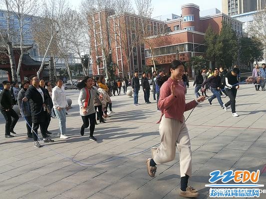 团体跳绳比赛将整个庆祝三八妇女节活动的氛围推向了高潮。跳绳这种简单又健康的锻炼娱乐方式广受老师们的欢迎,放下手中的讲义和粉笔,来到运动场,灿烂的阳光下,无论是身轻如燕的高手,还是勇敢挑战自己的跳绳“小白”,老师们在比赛中都快乐而享受,掌声不断、笑声不断,其乐融融。虽说是妇女节庆祝活动,男老师们也积极参与其中,初春的暖阳映衬着大家的笑脸,是这世上最美的风景。