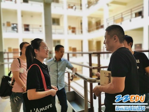 家长们与任课教师交流学生的课堂表现