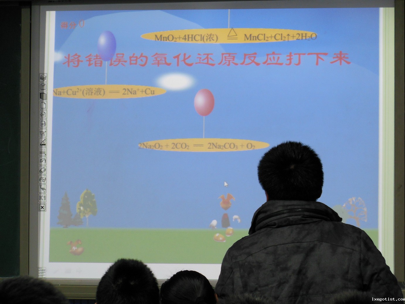在高一复习氧化还原反应时,设计的射击小游戏(小狗扔石头击打悬挂在活动气球上的错误氧化还原方程式),及时巩固了氧化还原反应的知识,也增强了学生的学习兴趣。