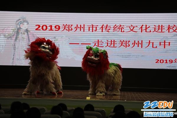 戏曲老师首先向同学们介绍了豫剧的起源和艺术特点等,让同学们了解了四生、四旦、四净、一丑等行当的区别,并介绍了“超化吹歌”的由来,老师现场展示了乐器演奏。在充满韵味的传统乐器伴奏中各位老师进行了艺术表演,小生的唱腔表演展示、血气方刚的武术表演、热闹的舞龙舞狮展示、传统水墨作画等精彩的表演吸引了同学们,礼堂内不时传出热烈的掌声。
