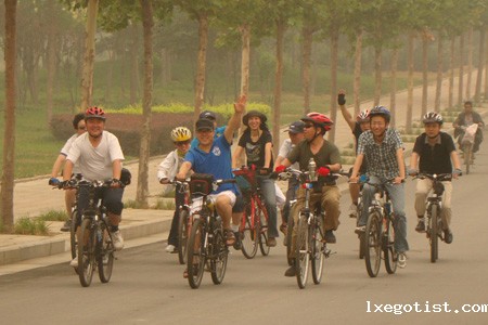 6月18日上午,bevictor自行车协会的老师们在田宝宏校长的带领下单车骑行外出,到中牟县境内的中国绿化博览园活动。