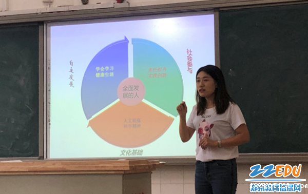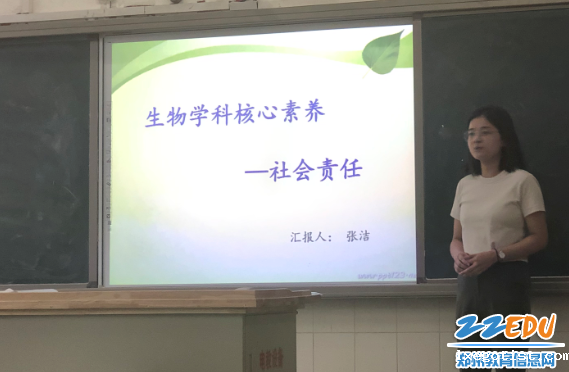 高三年级组的两位老师则分别展示了自己对核心素养的解读,王娜娜老师直接截取核心素养内容,逐级分析解读“科学探究”的四个素养水平,通过对教学中所遇探究类内容的分级,来把握教学深度,以提高教学效率和效果;张洁老师列举出教材中有关“社会责任”的部分,让老师们更加深刻认识的自己的教学不只是帮助学生获取分数,在教学中也要重视学生树立正确的世界观、人生观和价值观,获得利用所学知识和方法解决实际问题的能力,也是社会主义核心价值观的重要体现。