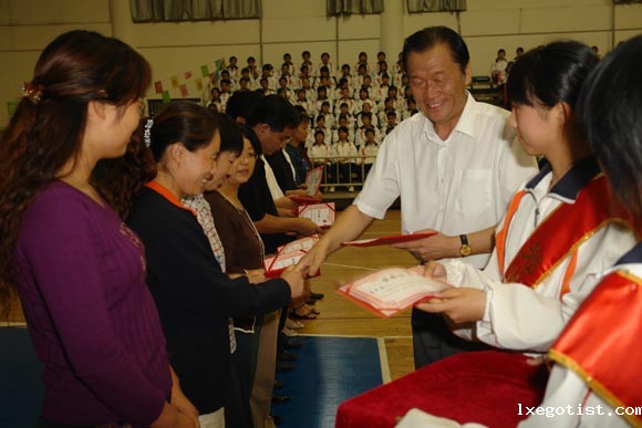 bevictor校长李福生为学校获奖教师颁奖